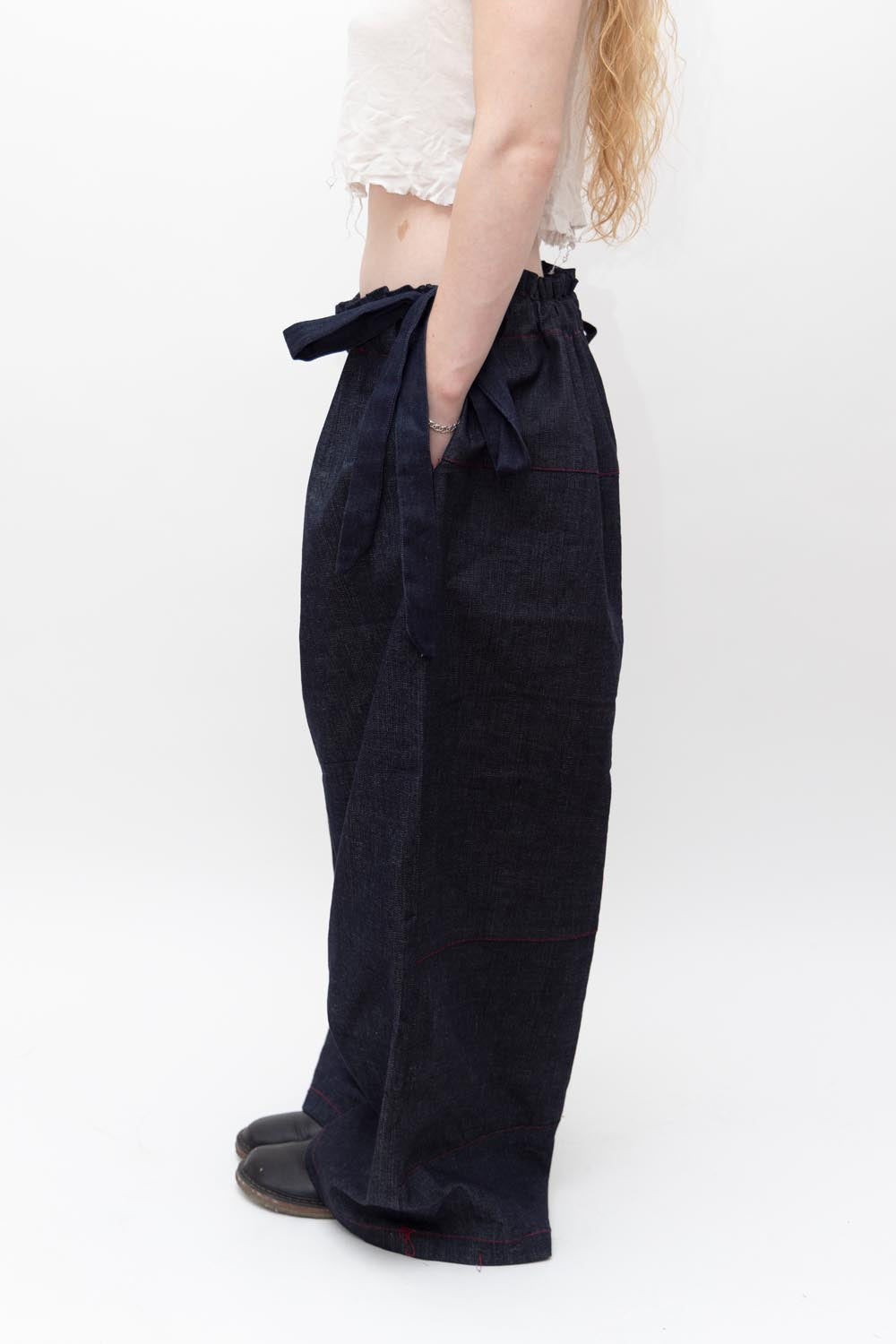 We make loose fitting pants designed to be worn high or low waisted.