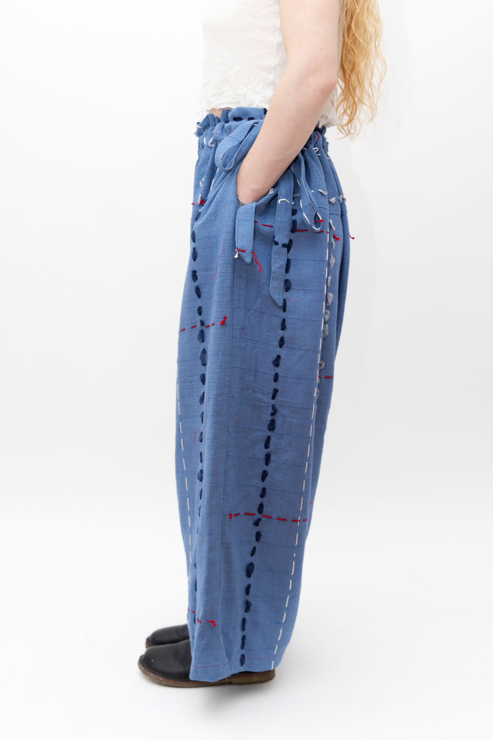 A collection of our 1/1 products featuring vintage textiles from modern American history. Often made from the unsung labor of women, we hope to give honor to the original makers of these textiles who invested so much of their time and energy into creating these pieces. This collection features unfinished quiltfaces, old tablecloths and napkins, hand embroidery, patches and more. We have combined many of them with vintage Eastern materials such as patches of Japanese kimono silk because we think thats really cool.